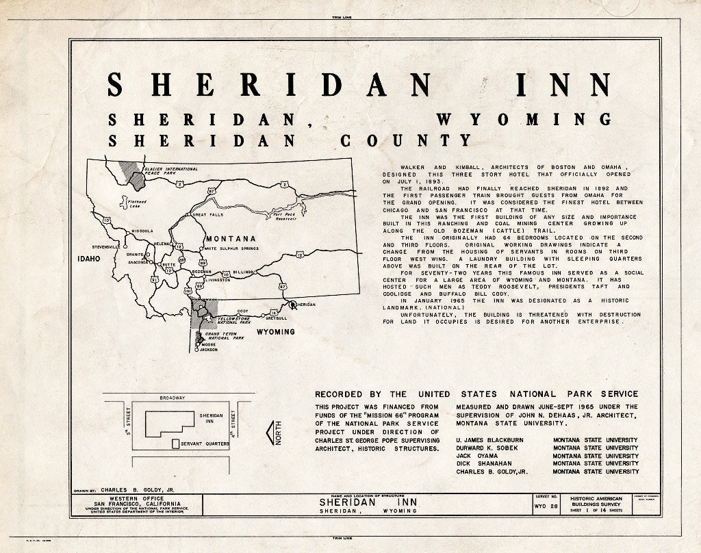 Blueprint 1. Cover - Sheridan Inn, Broadway Between 4th & 5th Streets, Sheridan, Sheridan County, WY