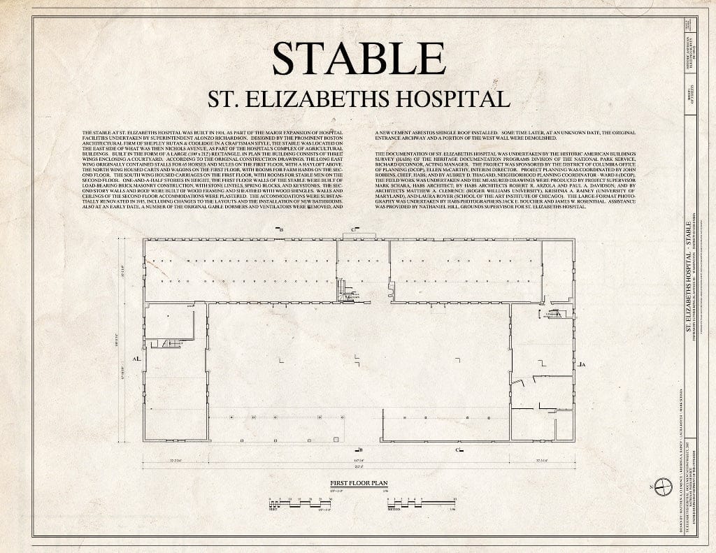 Blueprint 1. First Floor Plan - St. Elizabeths Hospital, Stable, 2700 Martin Luther King, Jr. Avenue Southeast, Washington, District of Columbia, DC