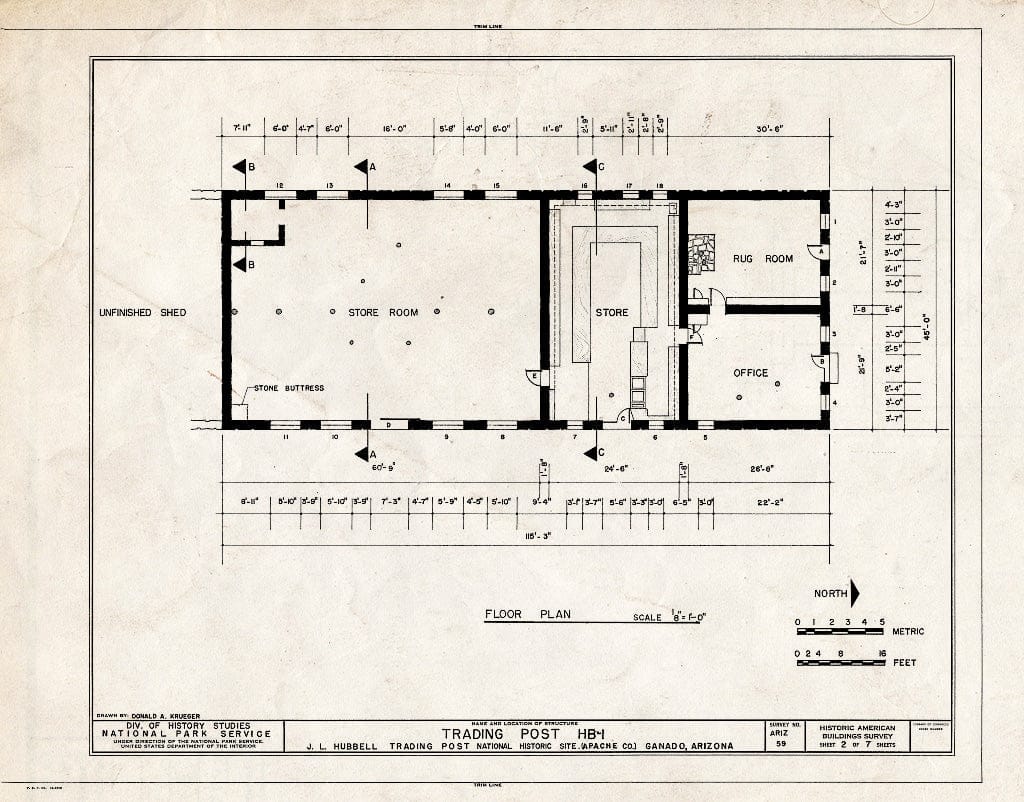 Blueprint HABS ARIZ,1-GANA,1A- (Sheet 2 of 7) - J. L. Hubbell Trading Post, HB-1, State Route 3 (Navajo Indian Reservation), Ganado, Apache County, AZ