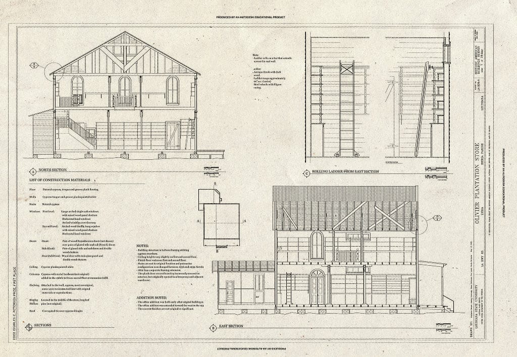 • .Blueprint HABS LA-1305-A (Sheet 6 of 19) - Olivier Plantation, Plantation Store, LA Highway 83, Lydia, Iberia Parish, LA