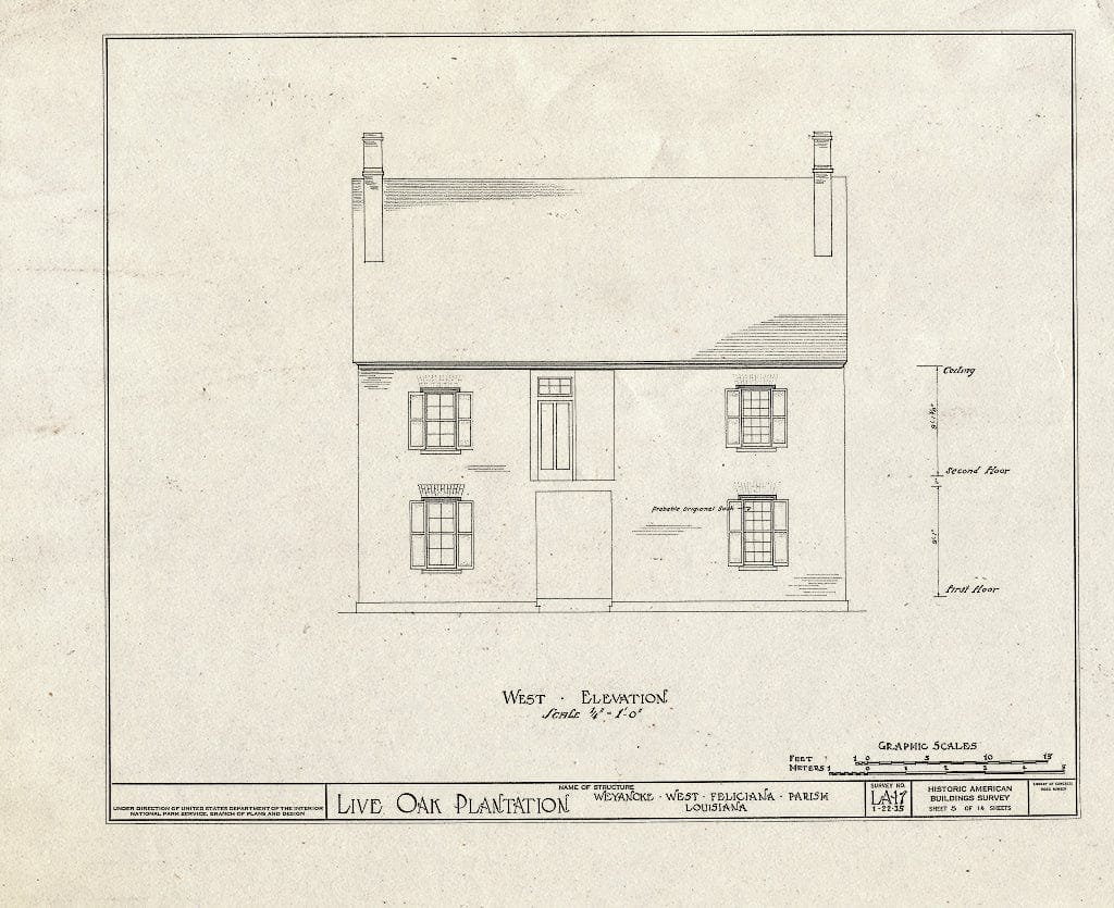• .Blueprint HABS LA,63-WEY.V,1- (Sheet 4 of 14) - Live Oak Plantation House, Between Weyanoke & Bains, Weyanoke, West Feliciana Parish, LA