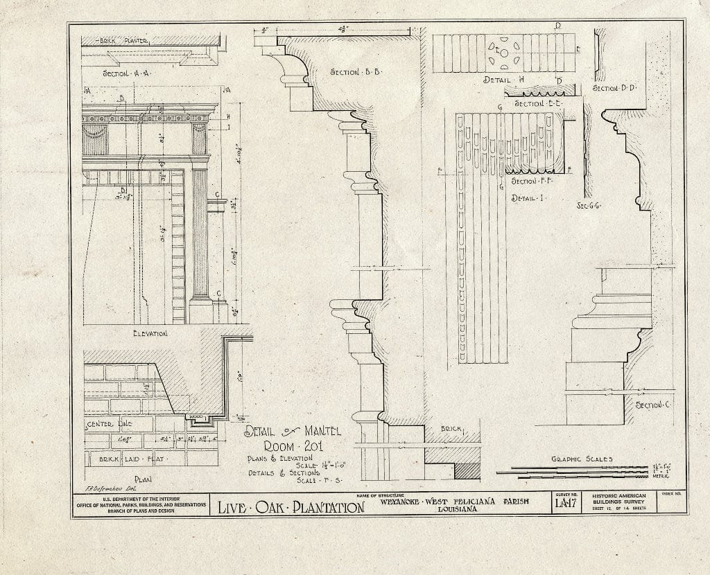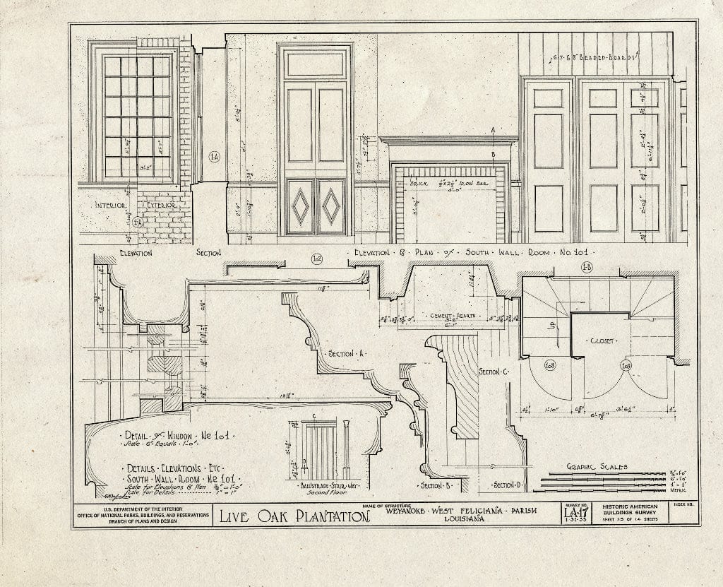 Blueprint HABS LA,63-WEY.V,1- (Sheet 12 of 14) - Live Oak Plantation House, Between Weyanoke & Bains, Weyanoke, West Feliciana Parish, LA