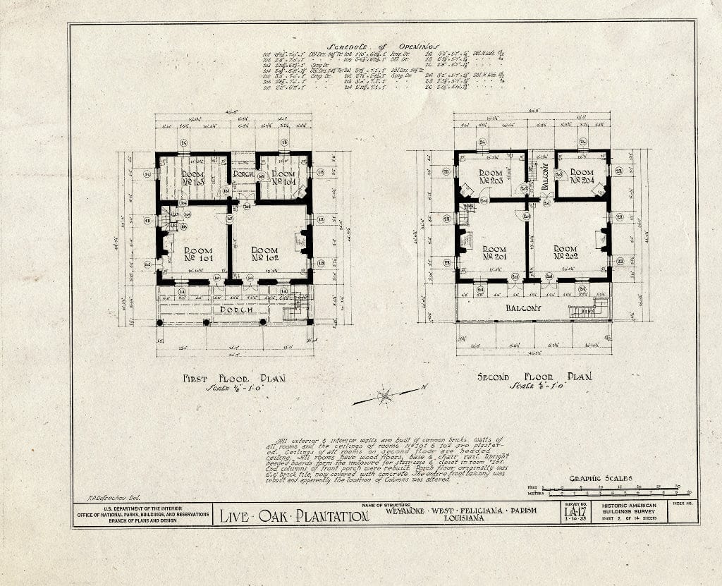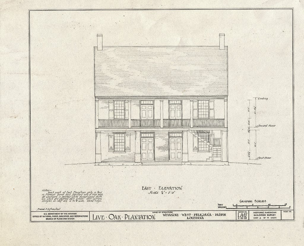 Blueprint HABS LA,63-WEY.V,1- (Sheet 2 of 14) - Live Oak Plantation House, Between Weyanoke & Bains, Weyanoke, West Feliciana Parish, LA
