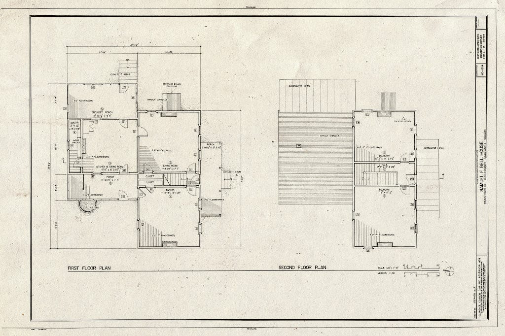 Blueprint HABS MO,87-Cent.V,1- (Sheet 1 of 5) - Samuel F. Bell House, County Route CC Vicinity, Center, Ralls County, MO