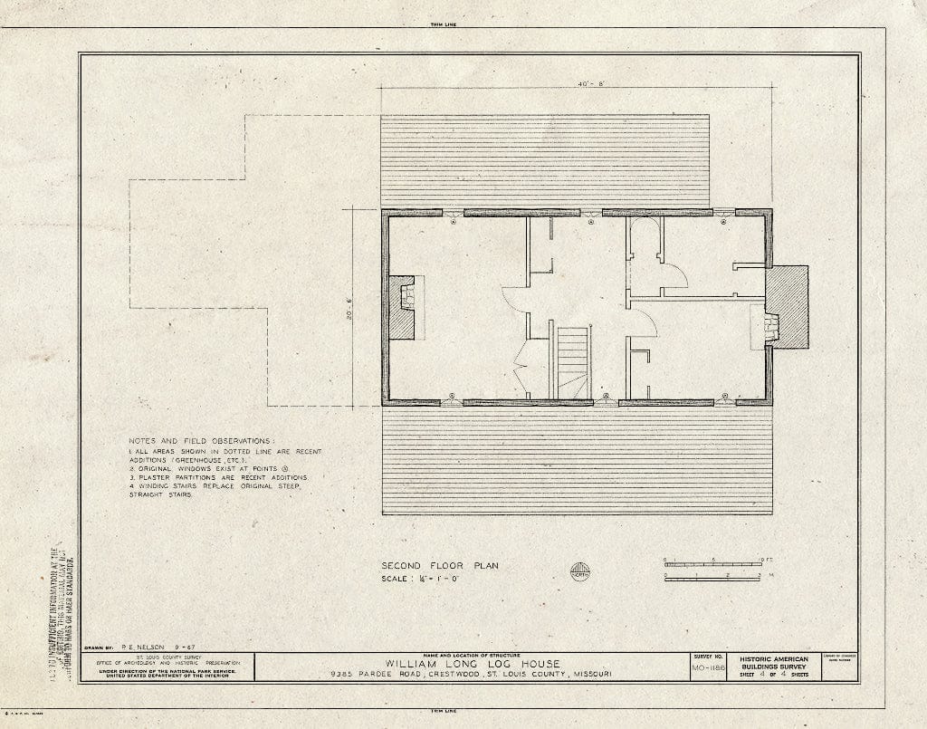 Blueprint HABS MO,95-Crest,2- (Sheet 3 of 4) - William Long Log House, 9385 Pardee Road, Crestwood, St. Louis County, MO