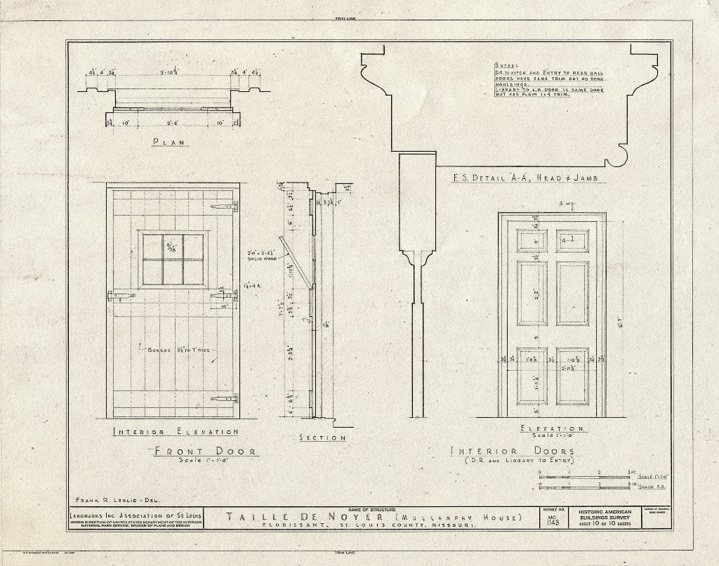 • Blueprint HABS MO,95-Flori.V,2- (Sheet 1 of 10) - Taille de Noyer, 400 Taille de Noyer, Florissant, St. Louis County, MO