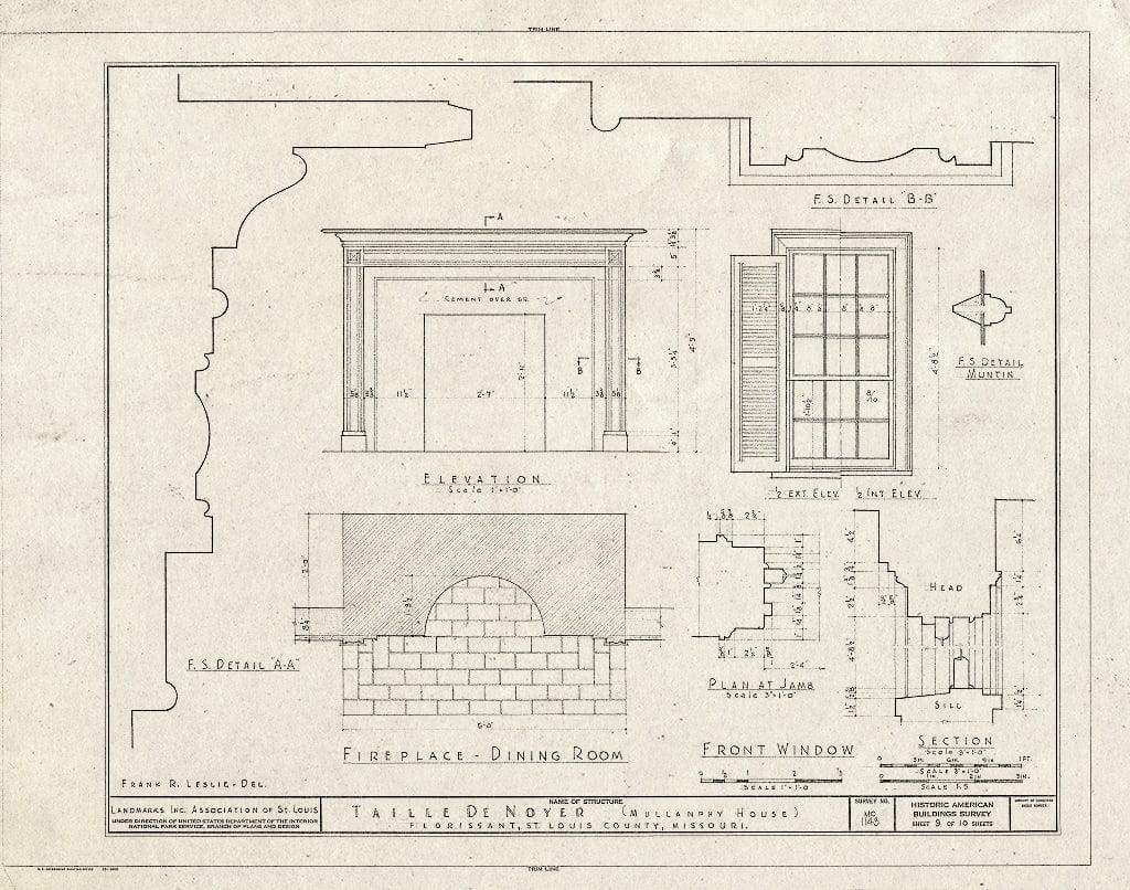 Blueprint HABS MO,95-Flori.V,2- (Sheet 8 of 10) - Taille de Noyer, 400 Taille de Noyer, Florissant, St. Louis County, MO