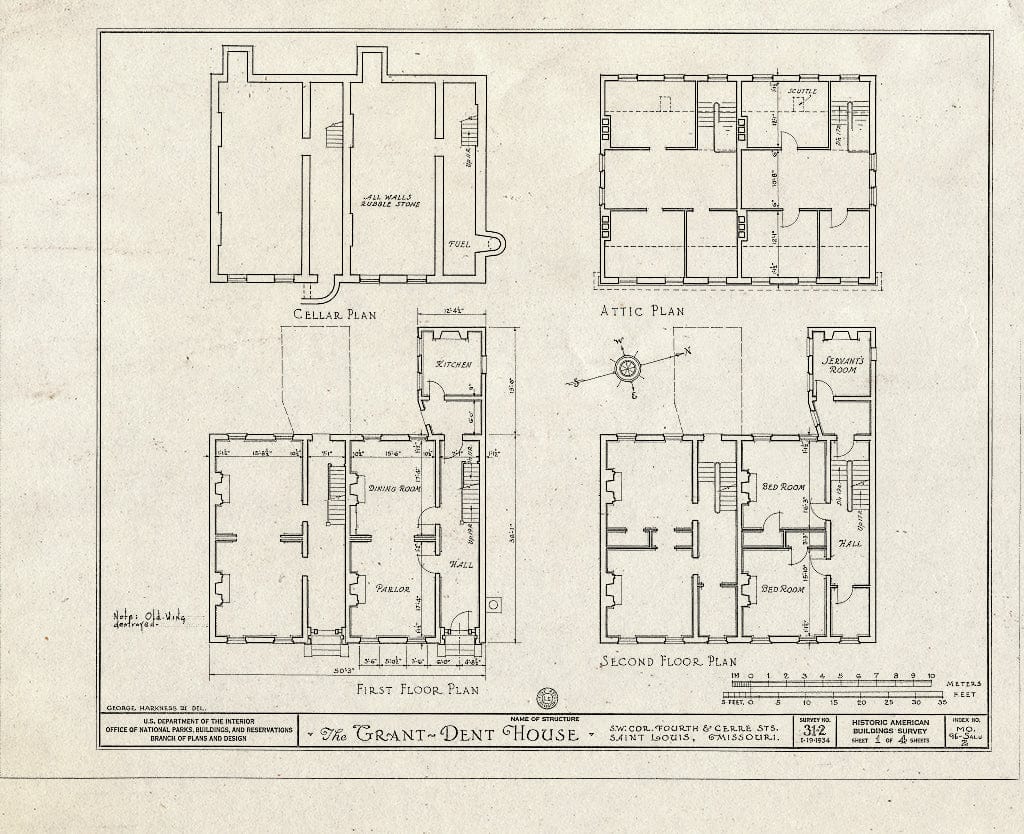 Blueprint HABS MO,96-SALU,2- (Sheet 0 of 4) - Grant-Dent House, 702 Fourth & Cerre Streets, Saint Louis, Independent City, MO