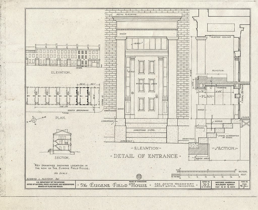 Blueprint HABS MO,96-SALU,3- (Sheet 3 of 4) - Eugene Field House, 634 South Broadway, Saint Louis, Independent City, MO