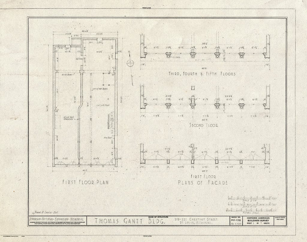 • Blueprint HABS MO,96-SALU,70- (Sheet 0 of 9) - Thomas Gantt Building, 219-221 Chestnut Street, Saint Louis, Independent City, MO