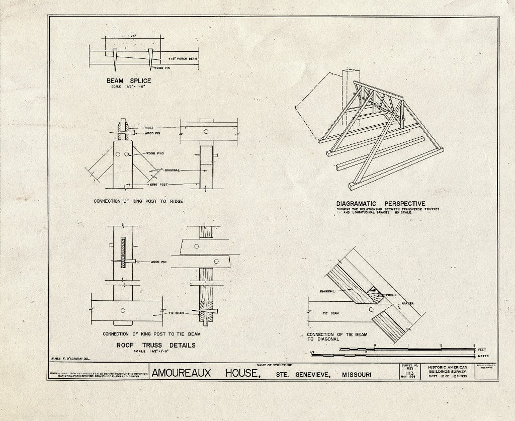 Blueprint HABS MO,97-SAIGEN,13- (Sheet 1 of 10) - Amoureaux House, 327 St. Mary's Road, Sainte Genevieve, Ste. Genevieve County, MO