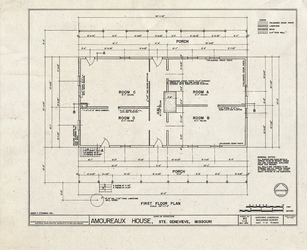 Blueprint HABS MO,97-SAIGEN,13- (Sheet 2 of 10) - Amoureaux House, 327 St. Mary's Road, Sainte Genevieve, Ste. Genevieve County, MO