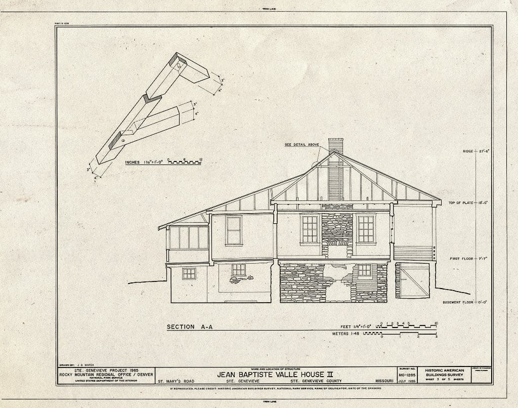 • Blueprint HABS MO,97-SAIGEN,34- (Sheet 2 of 5) - Jean Baptiste Valle House II, St. Mary's Road, Sainte Genevieve, Ste. Genevieve County, MO