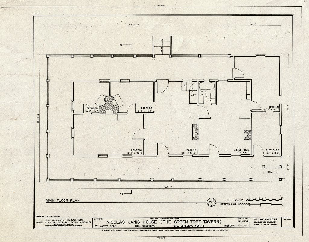 Blueprint HABS MO,97-SAIGEN,5- (Sheet 2 of) - Nicolas Janis House, 244 Old St. Mary's Road, Sainte Genevieve, Ste. Genevieve County, MO