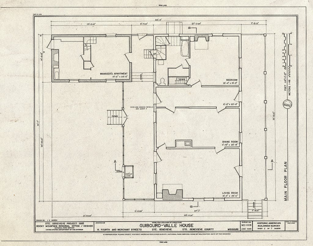 Blueprint HABS MO,97-SAIGEN,9- (Sheet 1 of 7) - Guibourd-Valle House, Fourth & Merchant Streets, Sainte Genevieve, Ste. Genevieve County, MO