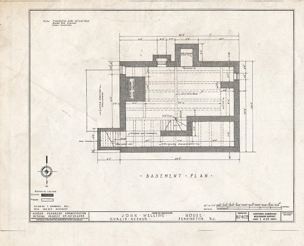 Blueprint HABS NJ,11-Pent,1- (Sheet 0 of 13) - John Welling House, Curlis Avenue, Pennington, Mercer County, NJ