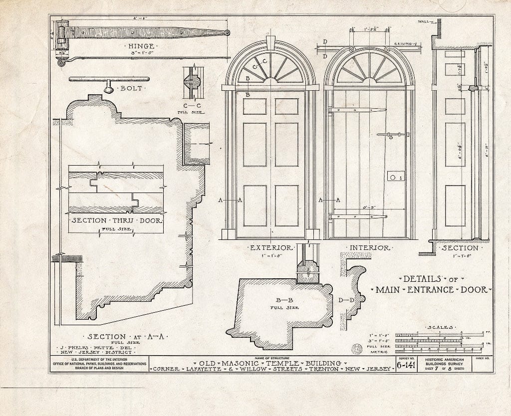 Blueprint HABS NJ,11-Tret,5- (Sheet 7 of 8) - Old Masonic Temple, South Willow & West Lafaytette Streets, Trenton, Mercer County, NJ