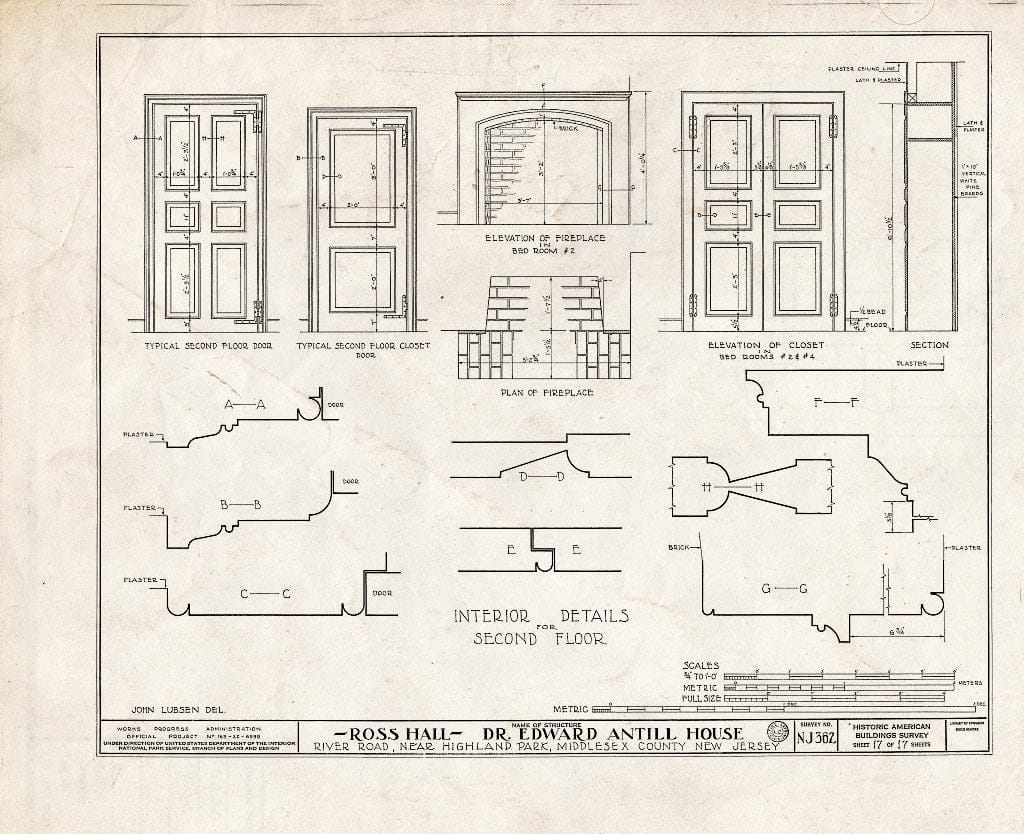 Blueprint HABS NJ,12-HILPA.V,1- (Sheet 16 of 17) - Dr. Antill House, River Road, Highland Park, Middlesex County, NJ