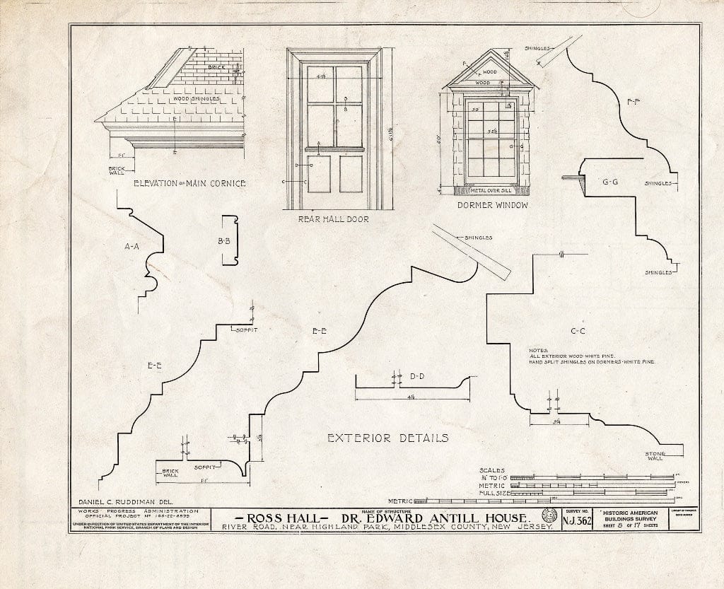 Blueprint HABS NJ,12-HILPA.V,1- (Sheet 7 of 17) - Dr. Antill House, River Road, Highland Park, Middlesex County, NJ