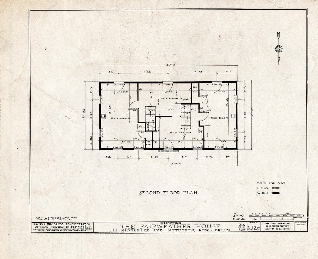 Blueprint HABS NJ,12-METU,1- (Sheet 2 of 6) - Thomas Fairweather House, 191 Middlesex Avenue, Metuchen, Middlesex County, NJ
