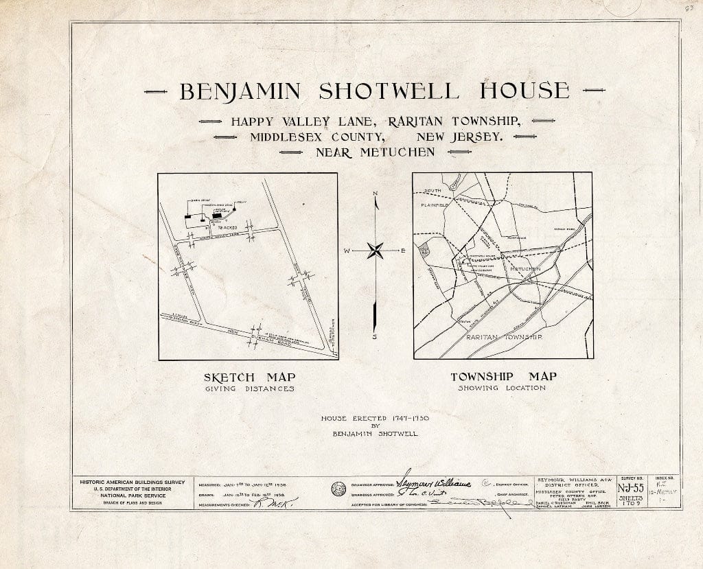 • Blueprint HABS NJ,12-METU.V,1- (Sheet 0 of 9) - Shotwell-Runyon House, Happy Valley Lane, Metuchen, Middlesex County, NJ