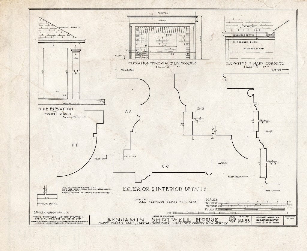 Blueprint HABS NJ,12-METU.V,1- (Sheet 7 of 9) - Shotwell-Runyon House, Happy Valley Lane, Metuchen, Middlesex County, NJ