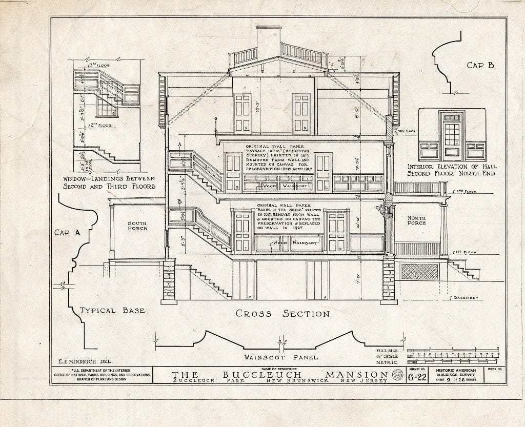 Blueprint HABS NJ,12-NEBRU,3- (Sheet 9 of 26) - White-Buccleuch Mansion, River Road, New Brunswick, Middlesex County, NJ