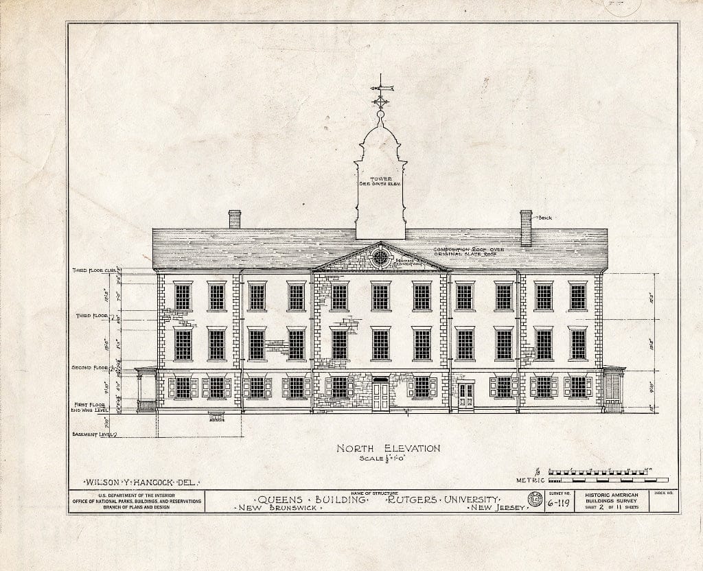 Blueprint HABS NJ,12-NEBRU,4- (Sheet 2 of 11) - Queen's Building, Somerset Street, New Brunswick, Middlesex County, NJ