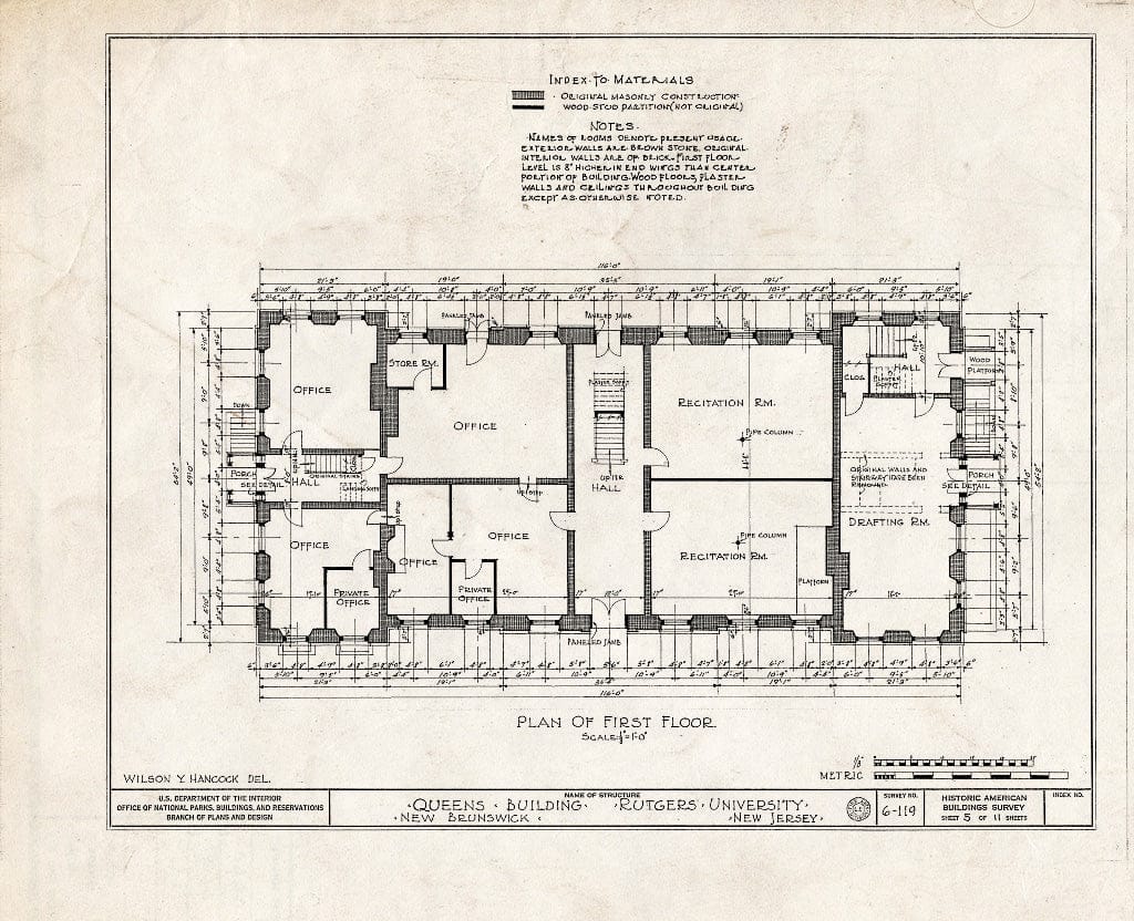 Blueprint HABS NJ,12-NEBRU,4- (Sheet 4 of 11) - Queen's Building, Somerset Street, New Brunswick, Middlesex County, NJ