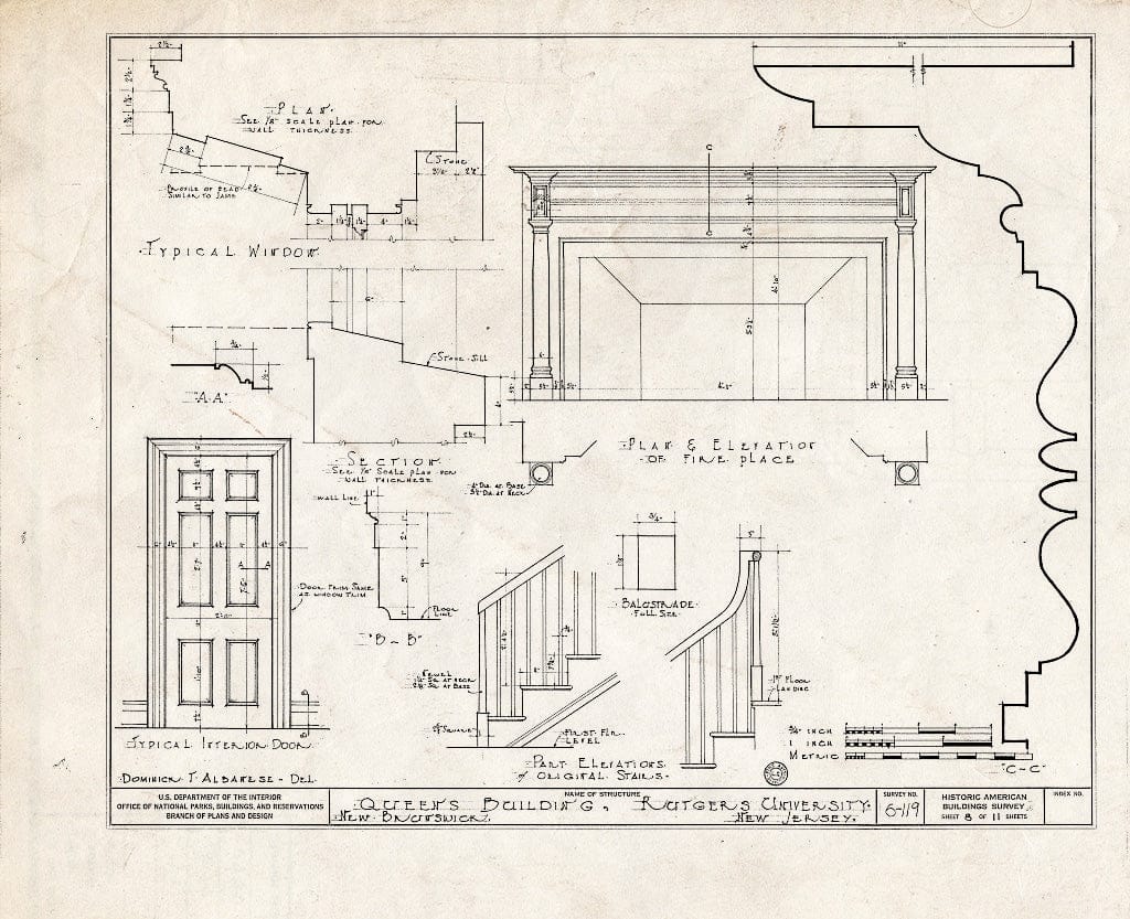 Blueprint HABS NJ,12-NEBRU,4- (Sheet 8 of 11) - Queen's Building, Somerset Street, New Brunswick, Middlesex County, NJ