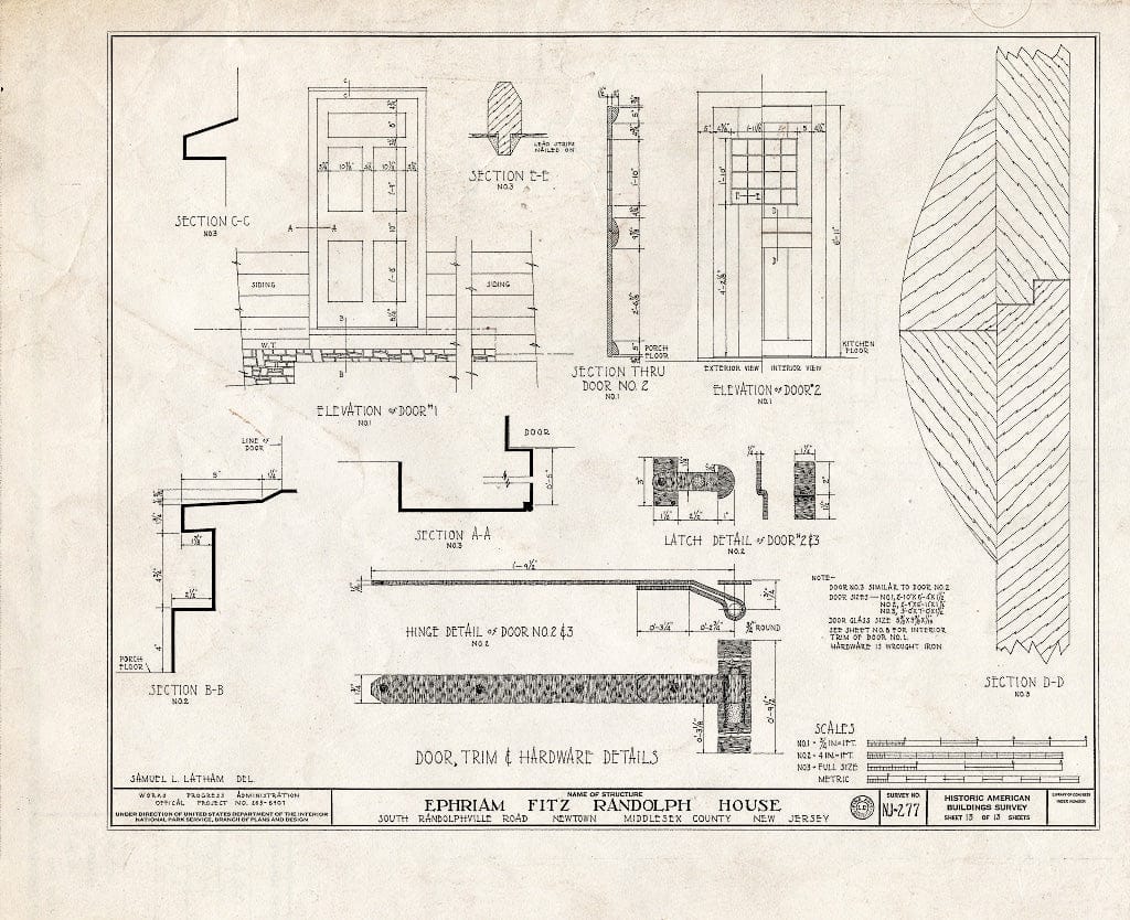 Blueprint HABS NJ,12-NEBRU.V,1- (Sheet 13 of 13) - Ephraim Fitz-Randolph House, South Randolphville Road, Newtown, Middlesex County, NJ