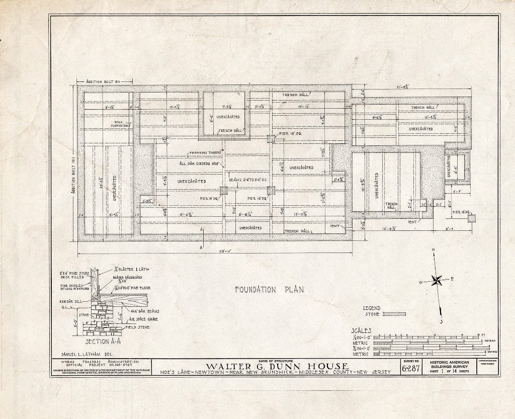 Blueprint HABS NJ,12-NEBRU.V,2- (Sheet 1 of 14) - Walter G. Dunn Farmhouse, Hoe's Lane, Newtown, Middlesex County, NJ