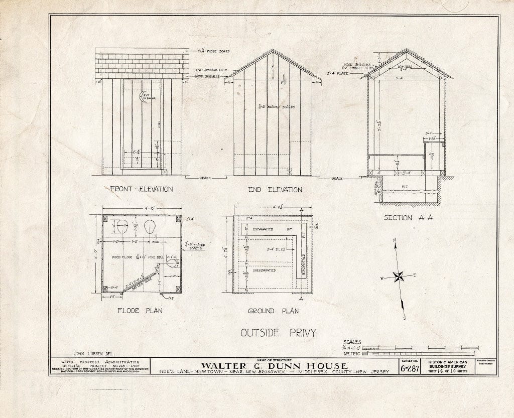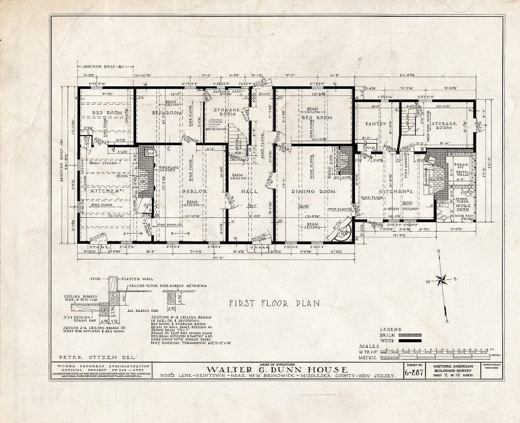 Blueprint HABS NJ,12-NEBRU.V,2- (Sheet 14 of 14) - Walter G. Dunn Farmhouse, Hoe's Lane, Newtown, Middlesex County, NJ
