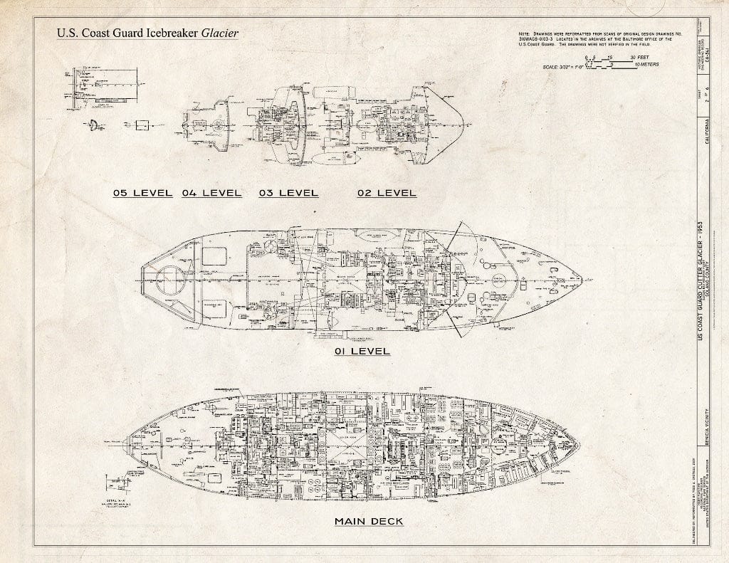 Blueprint 05 Level, 04 Level, 03 Level, 02 Level, 01 Level, and Main Deck Plans - US Coast Guard Icebreaker Glacier, Suisun Bay Reserve Fleet, Benicia, Solano County, CA