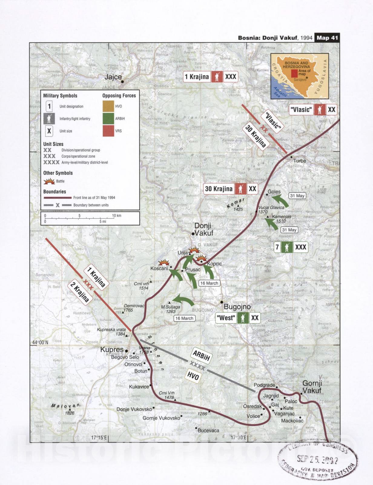 • .Historic 2002 Map - Balkan battlegrounds - Bosnia: Donji Vakuf, 1995