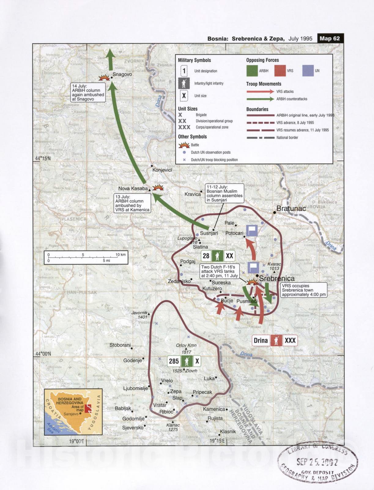 • .Historic 2002 Map - Balkan battlegrounds - Bosnia: Srebrenica & Zepa, July 1995