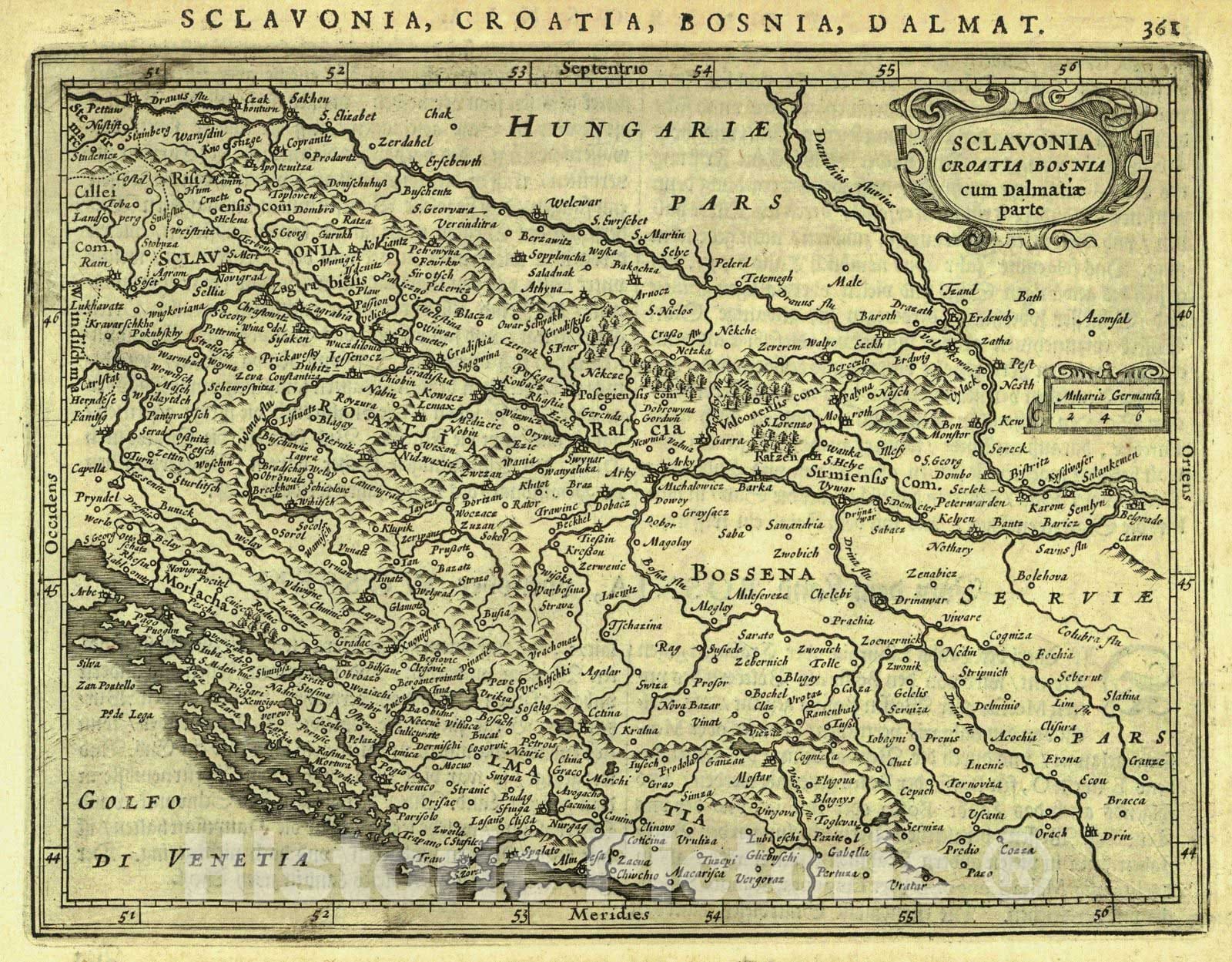 Historic Map : 1651 Sclavonia, Croatia, Bosnia cum Dalmatiae parte : Vintage Wall Art