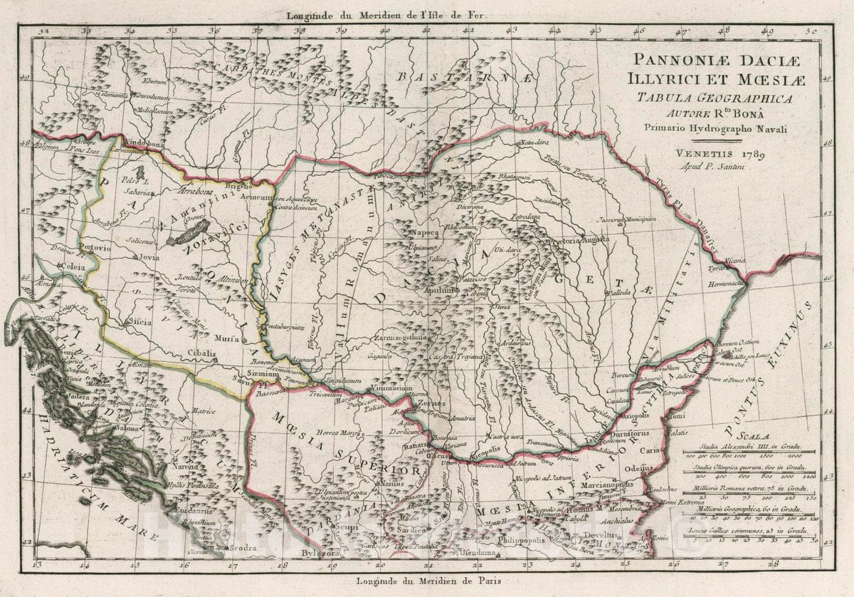 Historic Map : Bosnia and Herzegovina, Pannoniae Daciae Illyrici et Mcesiae Tabula geographica, 1789 Atlas , Vintage Wall Art