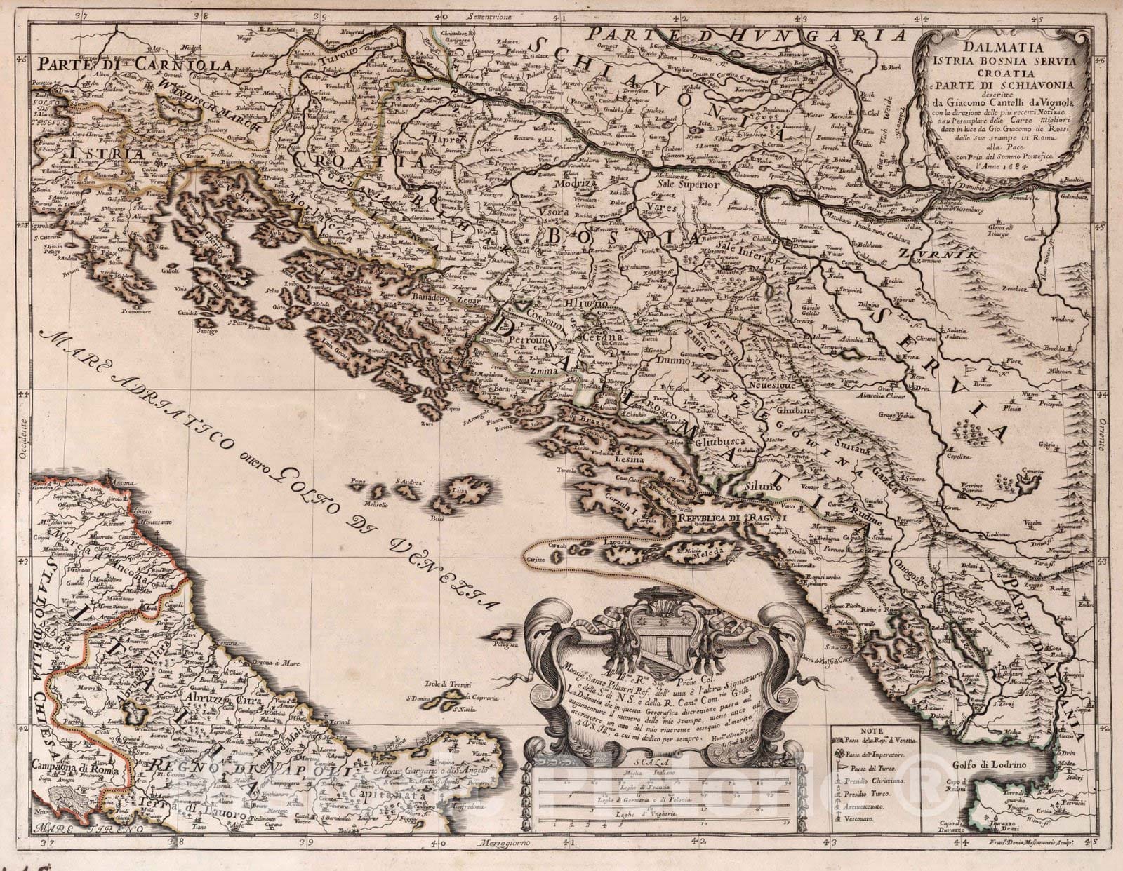 Historic Map : Croatia, , EuropeDalmatia, Istria, Bosnia, Servia, Croatia e Parte di Schiavonia 1684 , Vintage Wall Art