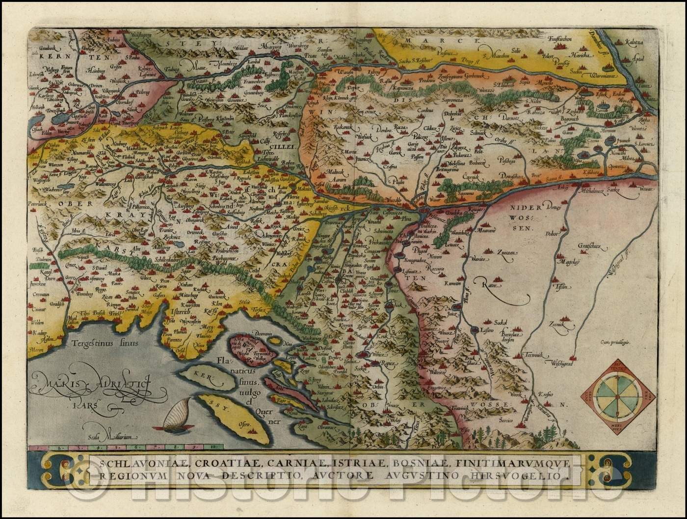 Historic Map - Schlavoniae, Croatiae, Carniae, Istriae, Bosniae, Finitimarumque Regionum Nova Descriptio, 1587, Abraham Ortelius - Vintage Wall Art