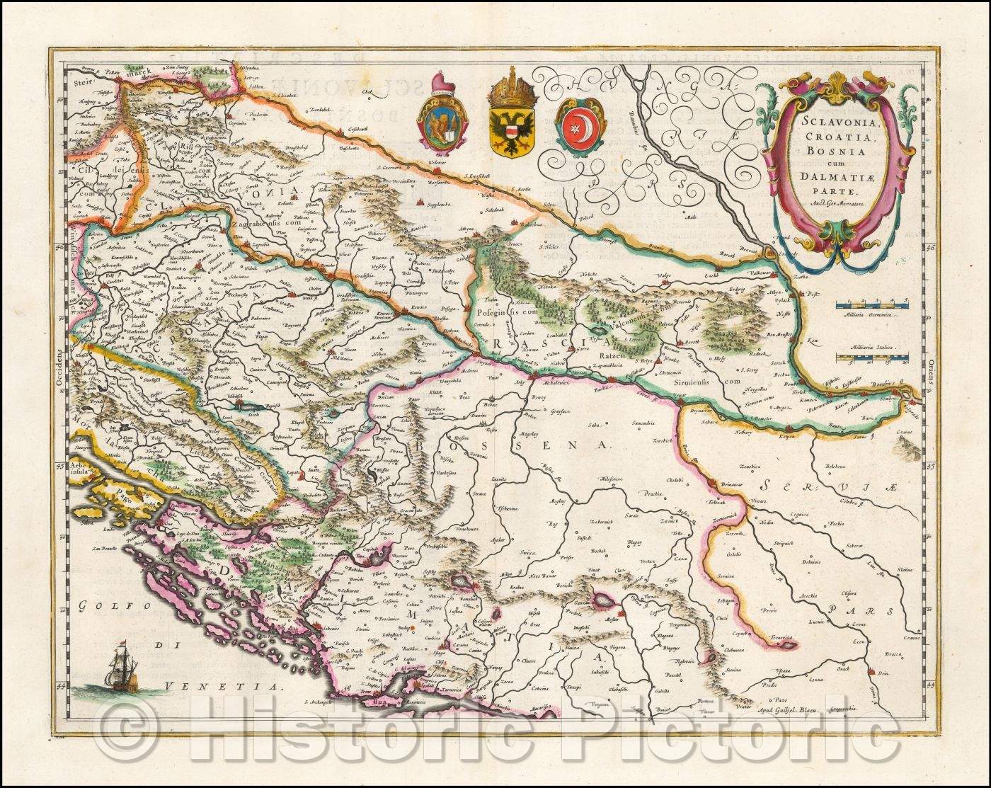Historic Map - Sclavonia, Croatia, Bosnia, cum Dalmatiae cum Dalmatiae Parte :: Slavonia, Croatia, Bosnia, part of Dalmatia, 1640 - Vintage Wall Art