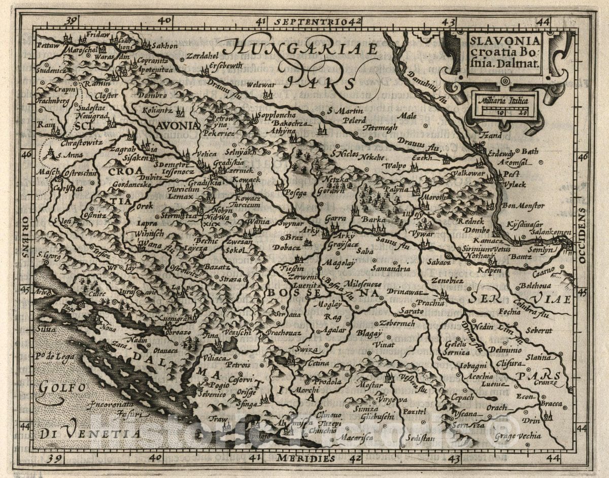 • .Historic Map : Slovania, Sclavonia, Croatia, Bosnia Cum Dalmat, 1607 Atlas , Vintage Wall Art