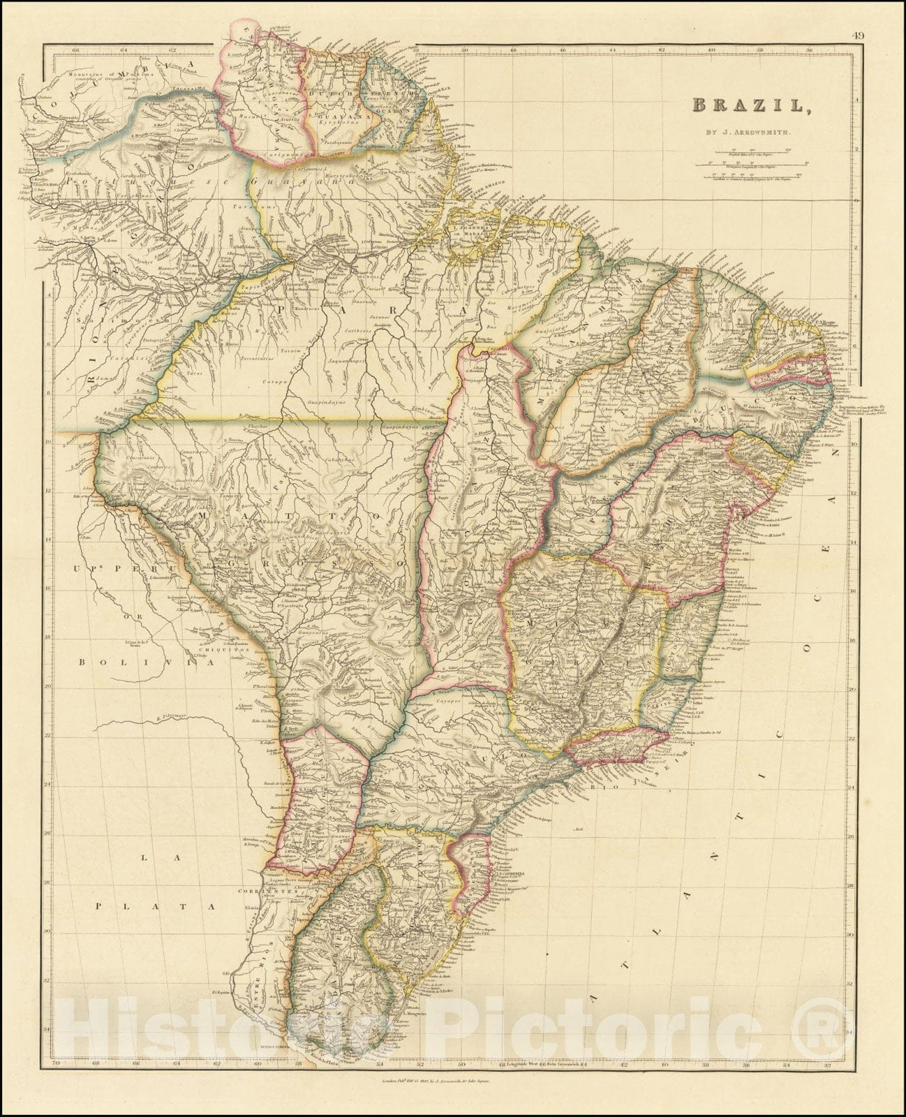 Historic Map : Brazil, 1842, Vintage Wall Art