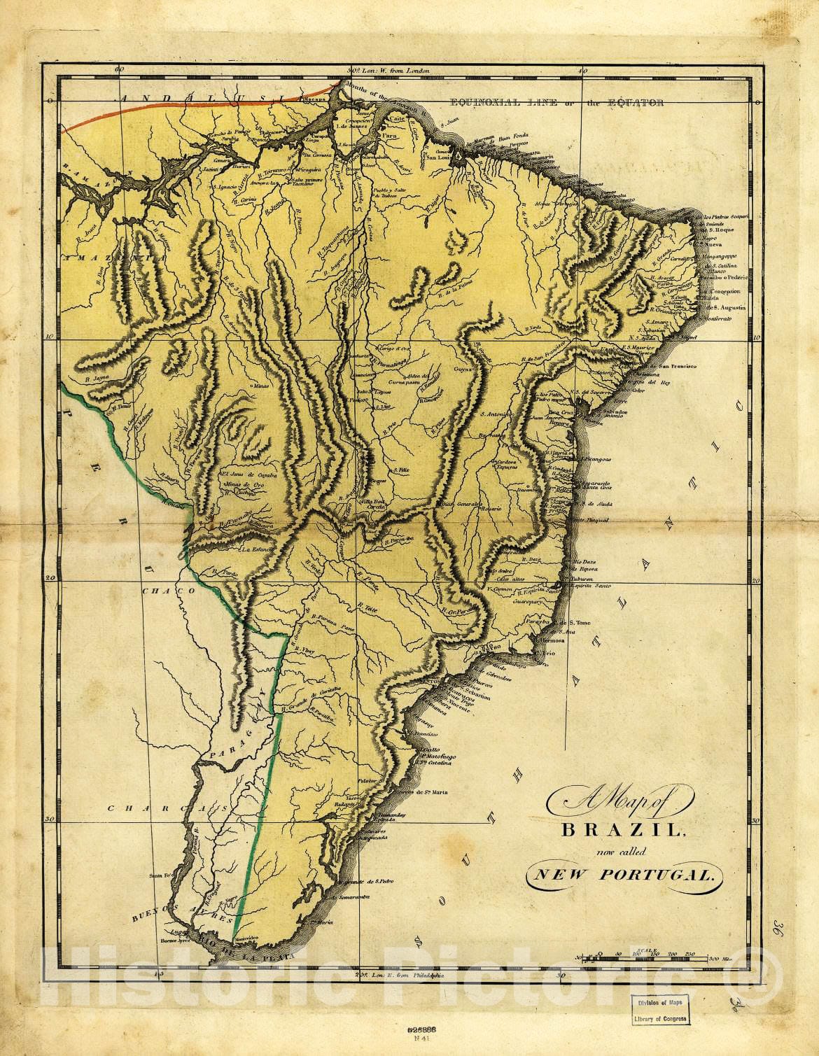 • Historic 1814 Map - A map of Brazil, Now Called New Portugal.