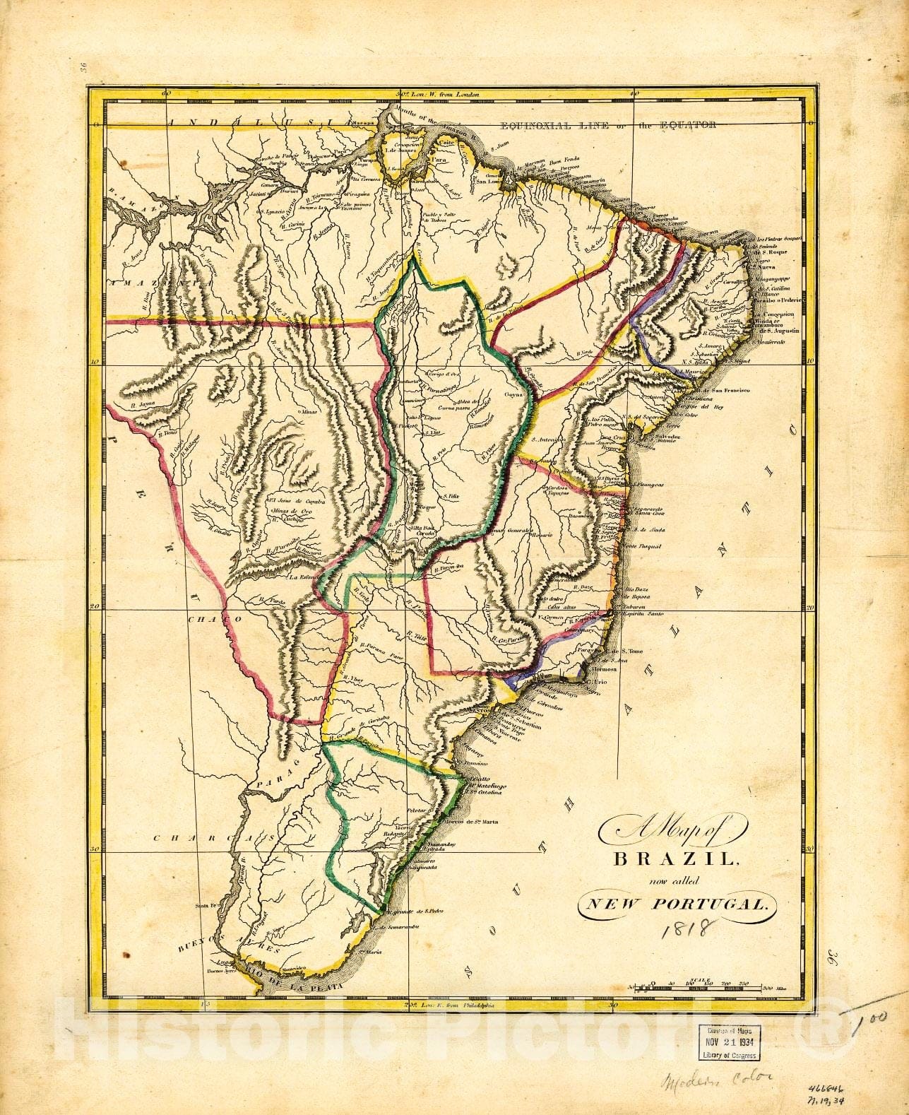 Historic 1818 Map - A map of Brazil, Now Called New Portugal.