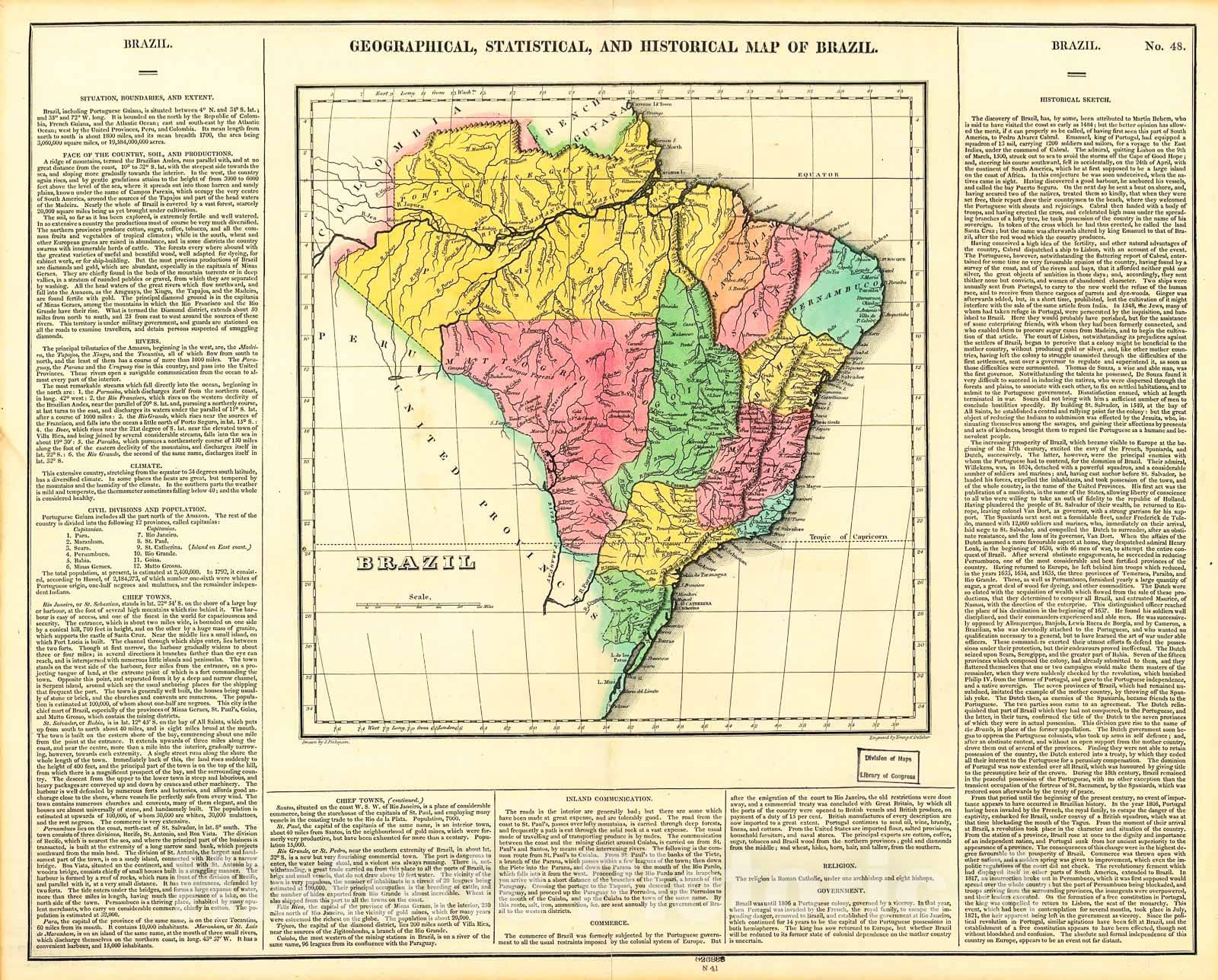 • .Historic 1822 Map - Geographical, Statistical, and Historical map of Brazil