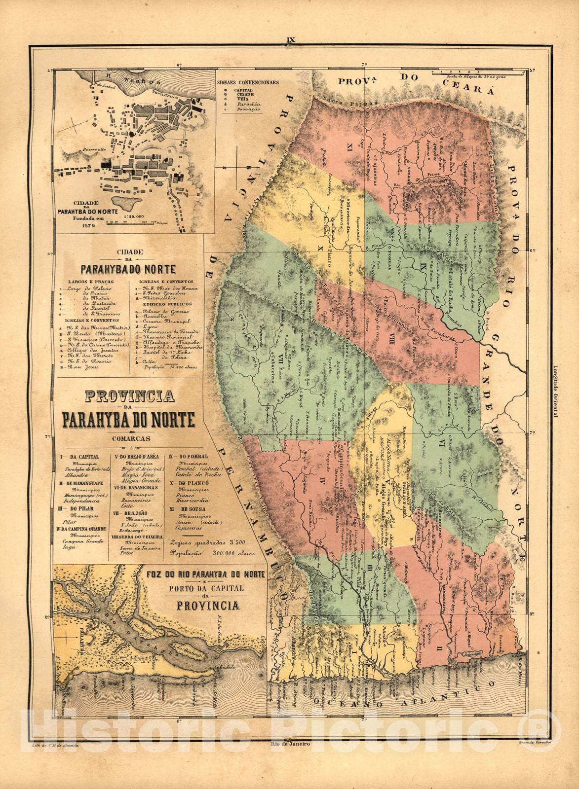 Historic 1868 Map - Atlas do Imperio do Brazil - Provincia da Parahyba do Norte