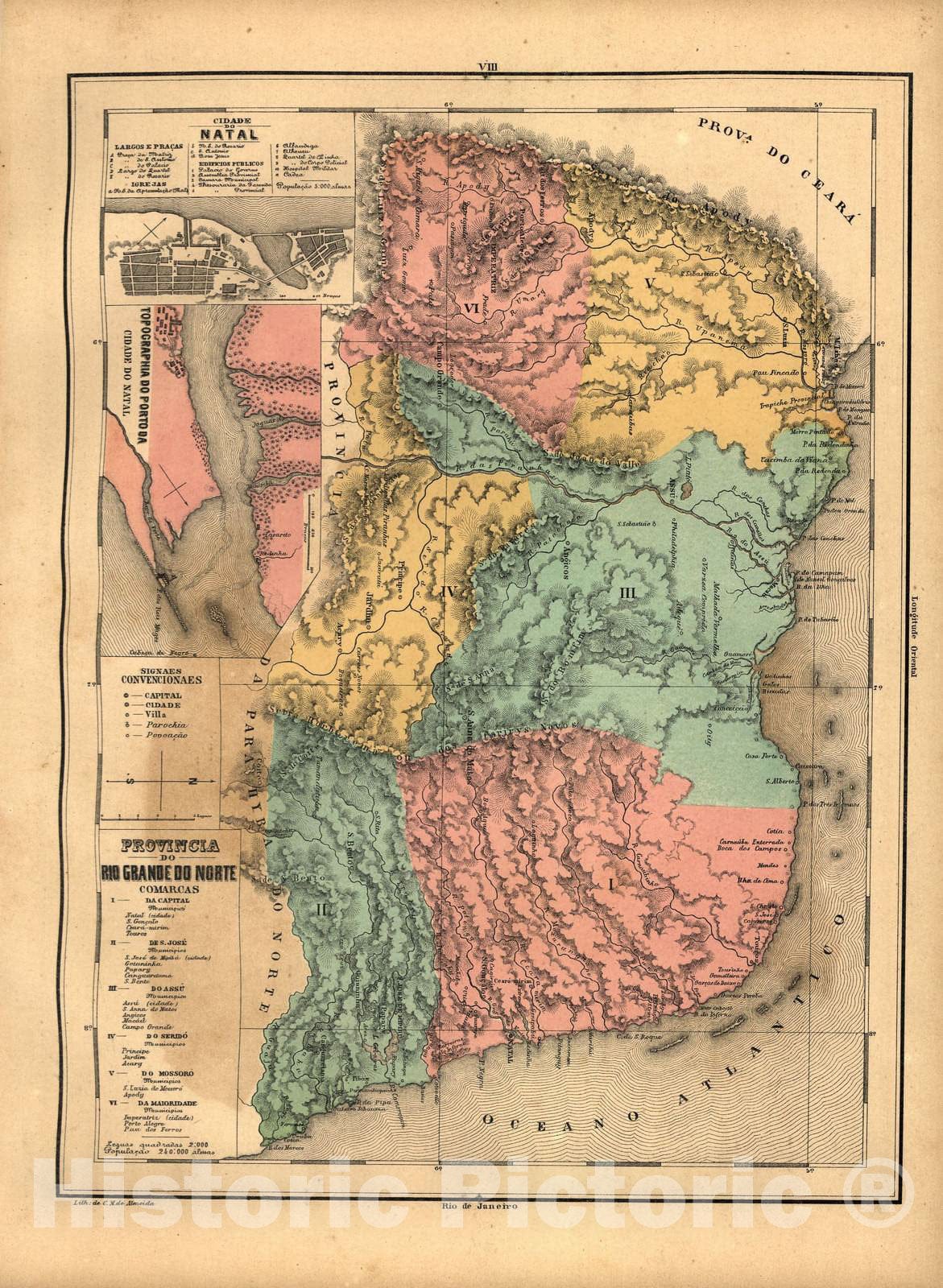 Historic 1868 Map - Atlas do Imperio do Brazil - Provincia do Rio Grande do Norte