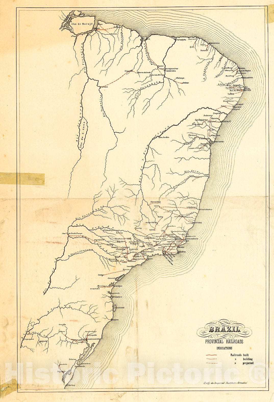 • .Historic 1902 Map - Brazil, Provincial Railroads.