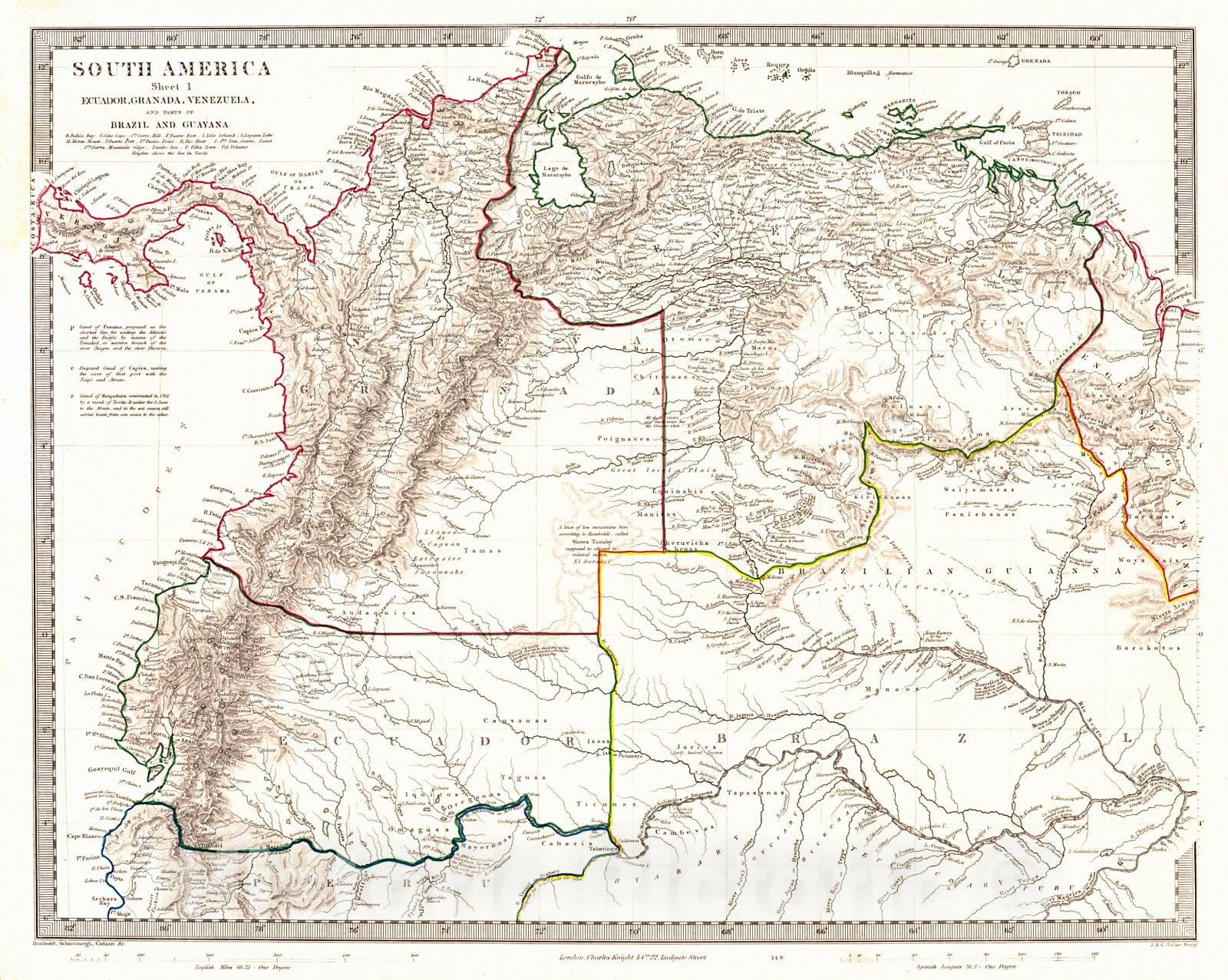 • .Historic Map : 1846 South America Sheet I, Ecuador, Granada, Venezula, and Parts of Brazil and Guayana : Vintage Wall Art